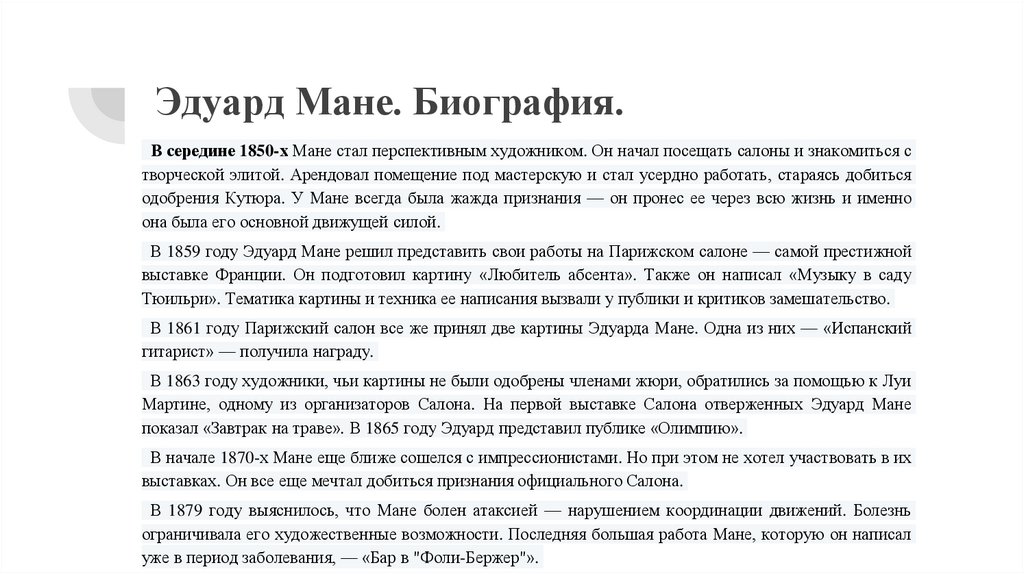 Итоговый проект: Творчество художника-живописца Эдуарда Мане