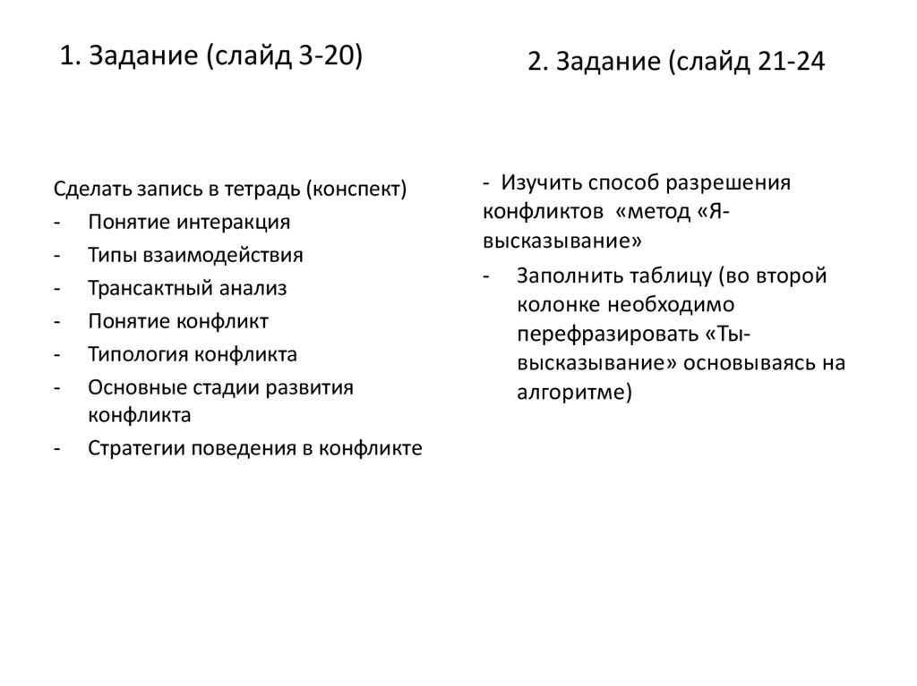 1. Задание (слайд 3-20)Сделать запись в тетрадь (конспект)