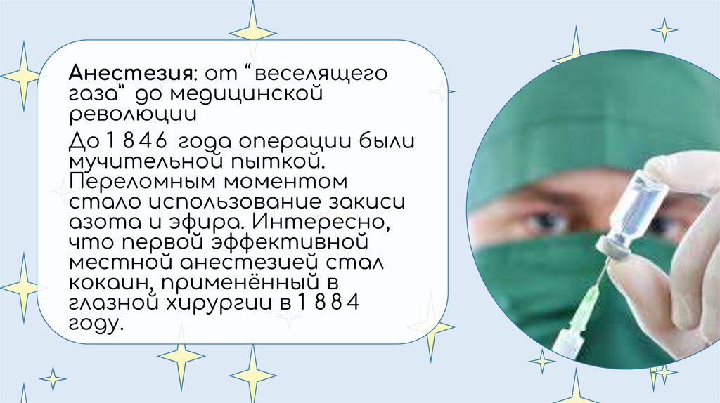 Анестезия: от “ веселящегогаза” до медицинской