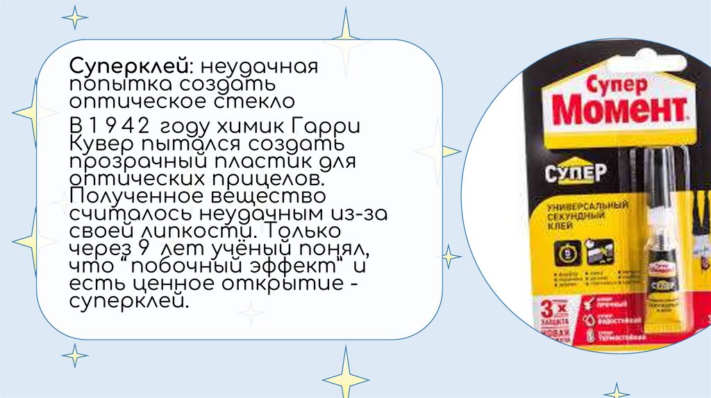 есть ценное открытие суперклей.