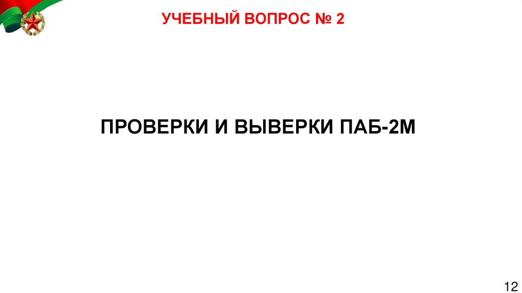 УЧЕБНЫЙ ВОПРОС № 2ПРОВЕРКИ И ВЫВЕРКИ ПАБ-2М