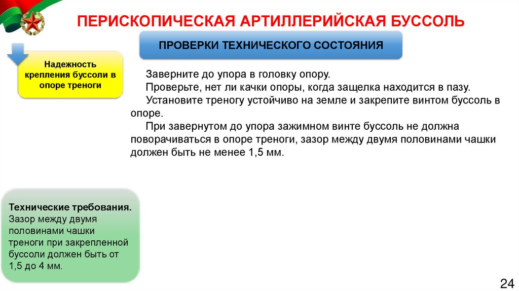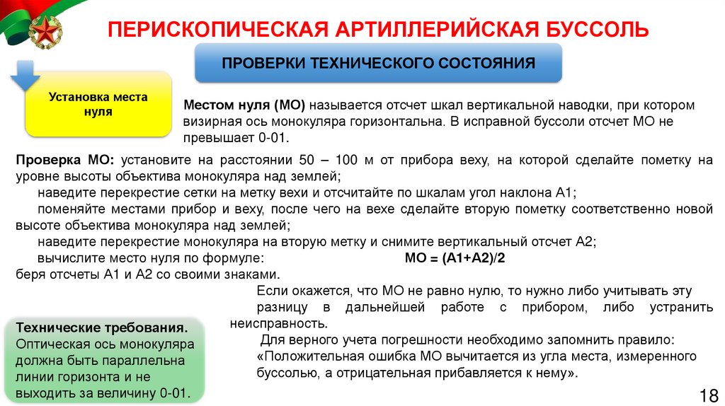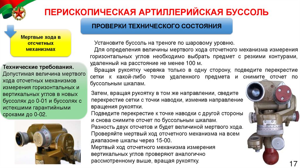 ПЕРИСКОПИЧЕСКАЯ АРТИЛЛЕРИЙСКАЯ БУССОЛЬПРОВЕРКИ ТЕХНИЧЕСКОГО СОСТОЯНИЯ