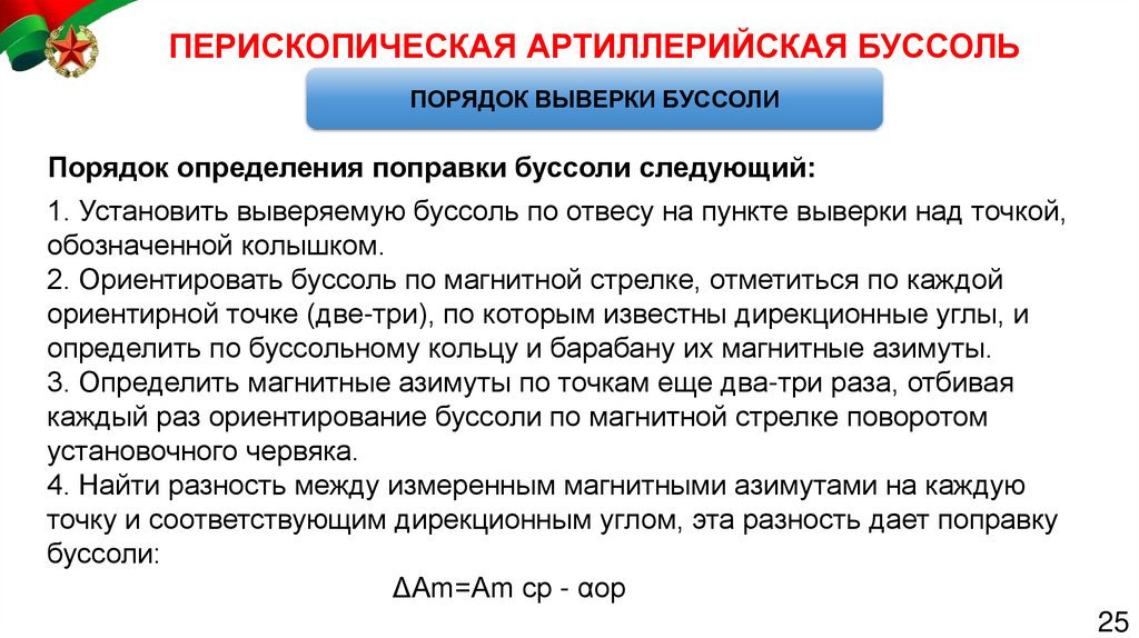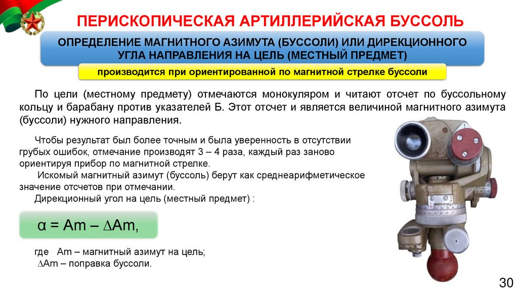 ПЕРИСКОПИЧЕСКАЯ АРТИЛЛЕРИЙСКАЯ БУССОЛЬОПРЕДЕЛЕНИЕ МАГНИТНОГО АЗИМУТА (БУССОЛИ) ИЛИ ДИРЕКЦИОННОГО