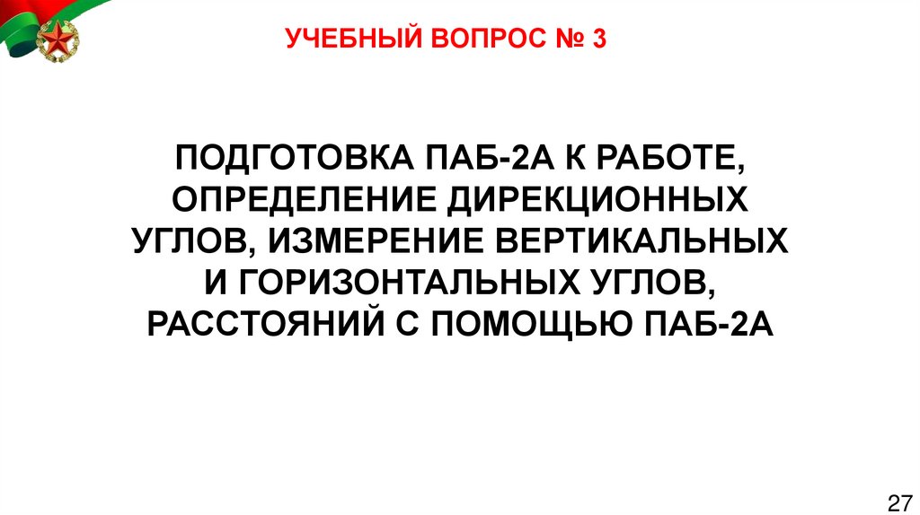 УЧЕБНЫЙ ВОПРОС № 3ПОДГОТОВКА ПАБ-2А К РАБОТЕ,