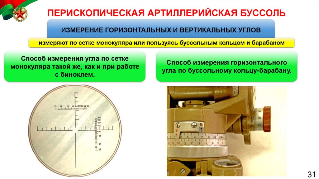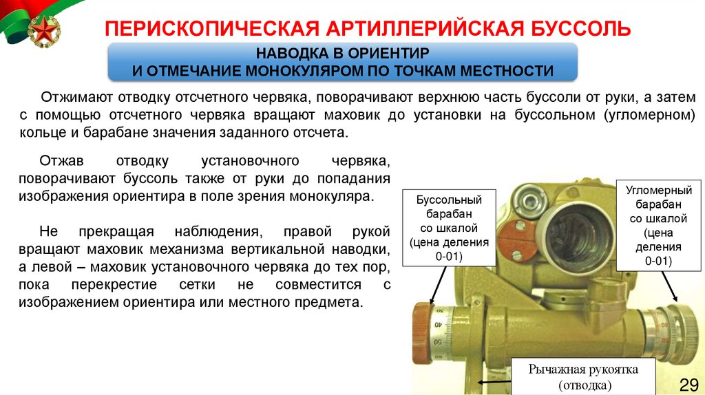 ПЕРИСКОПИЧЕСКАЯ АРТИЛЛЕРИЙСКАЯ БУССОЛЬИЗМЕРЕНИЕ ГОРИЗОНТАЛЬНЫХ И ВЕРТИКАЛЬНЫХ УГЛОВ