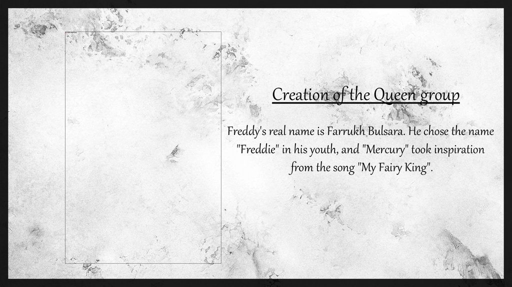 Creation of the Queen groupFreddy's real name is Farrukh Bulsara. He chose the name