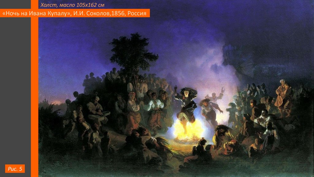 Холст, масло 105х162 см«Ночь на Ивана Купалу», И.И. Соколов,1856, Россия