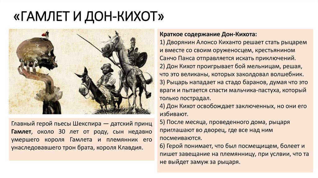 «ГАМЛЕТ И ДОН-КИХОТ»Главный герой пьесы Шекспира — датский принц
