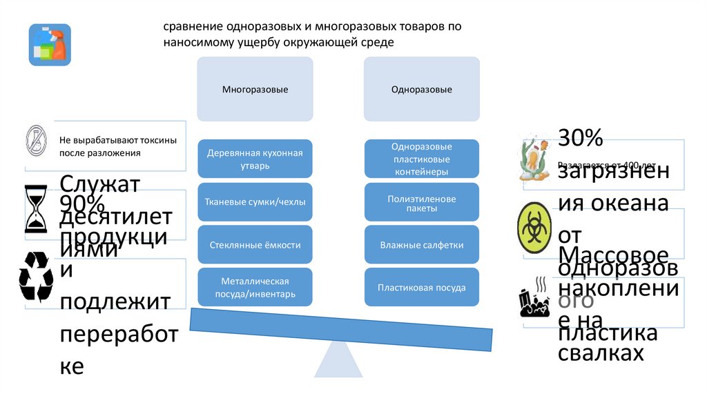 сравнение одноразовых и многоразовых товаров понаносимому ущербу окружающей среде