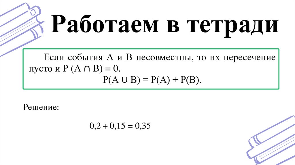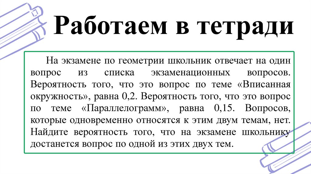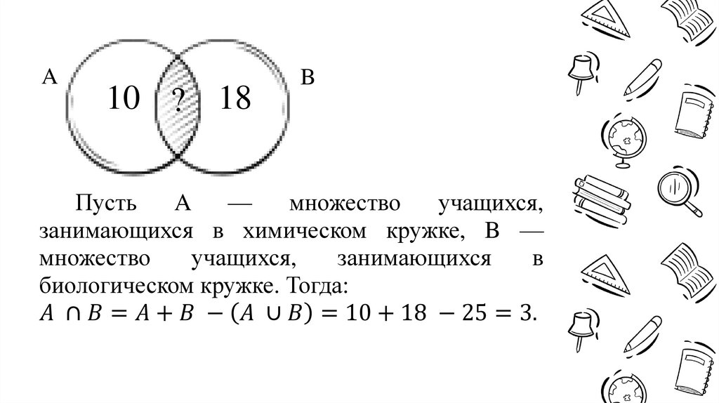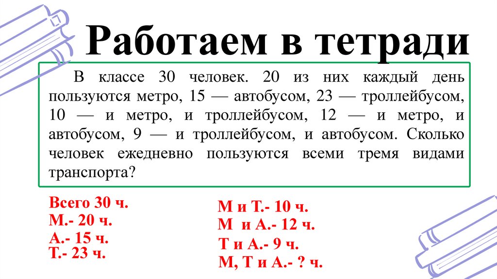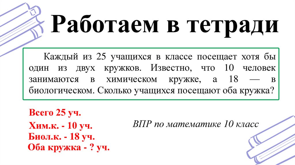 Работаем в тетрадиКаждый из 25 учащихся в классе посещает хотя бы