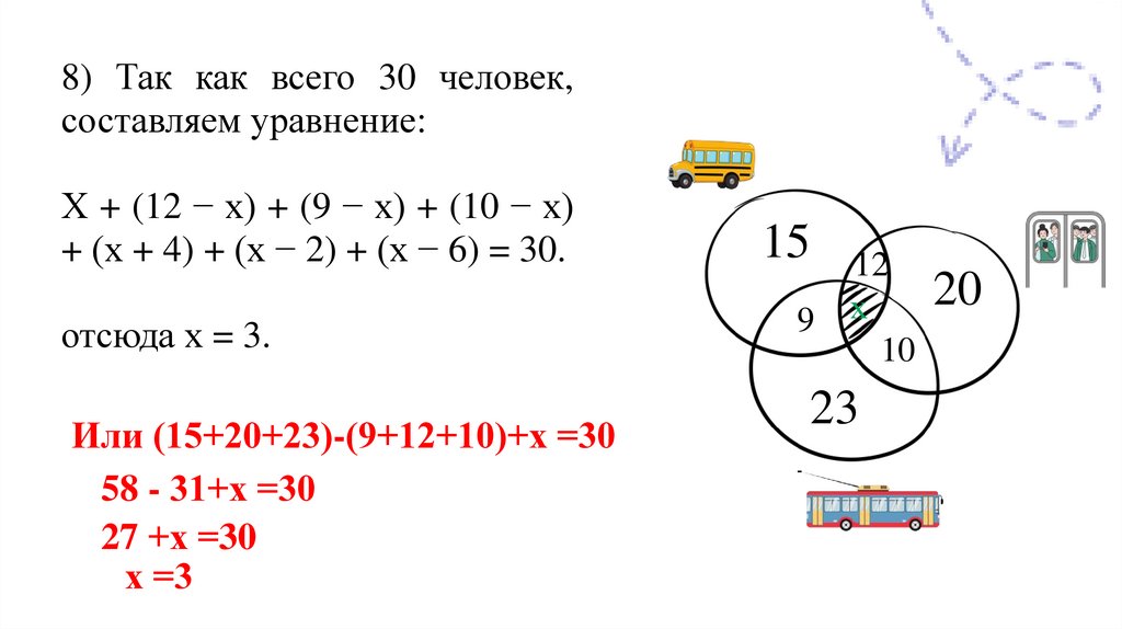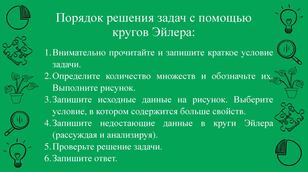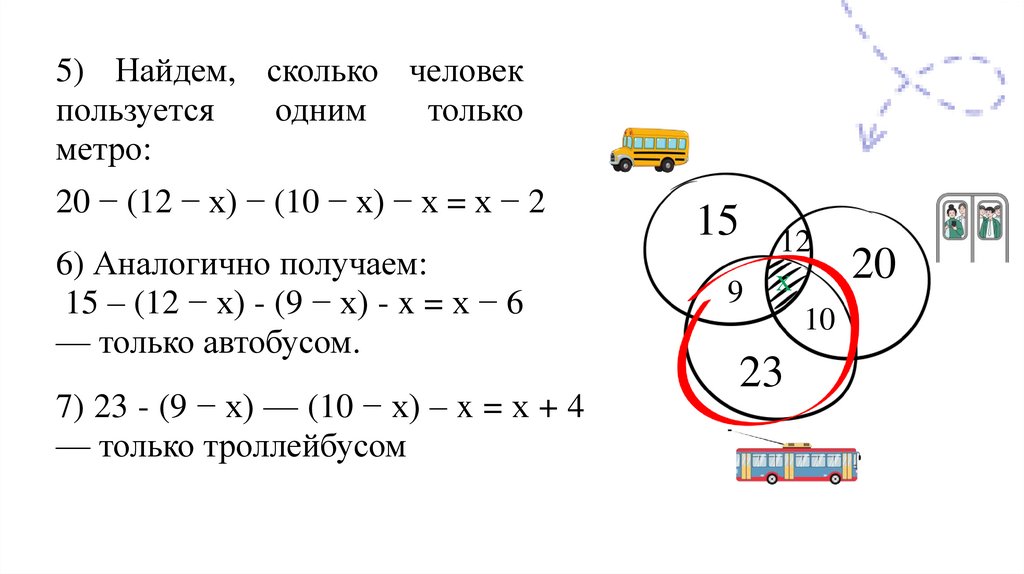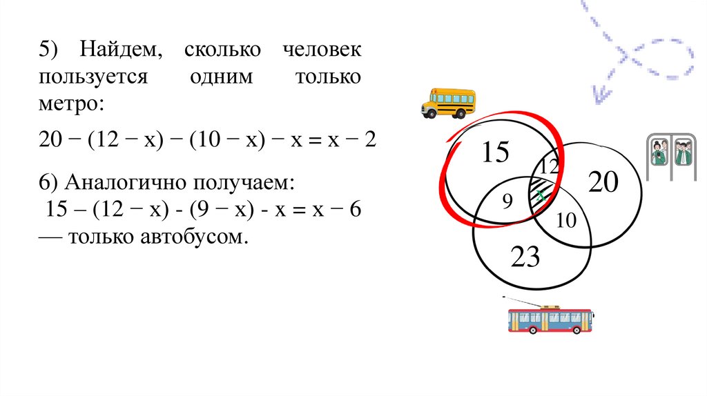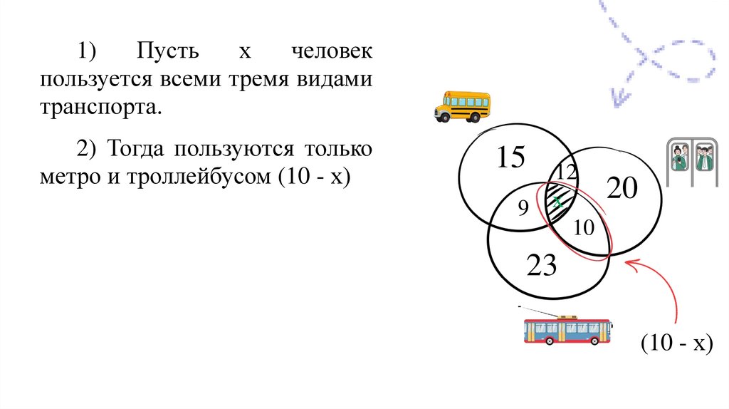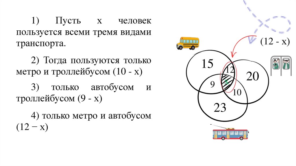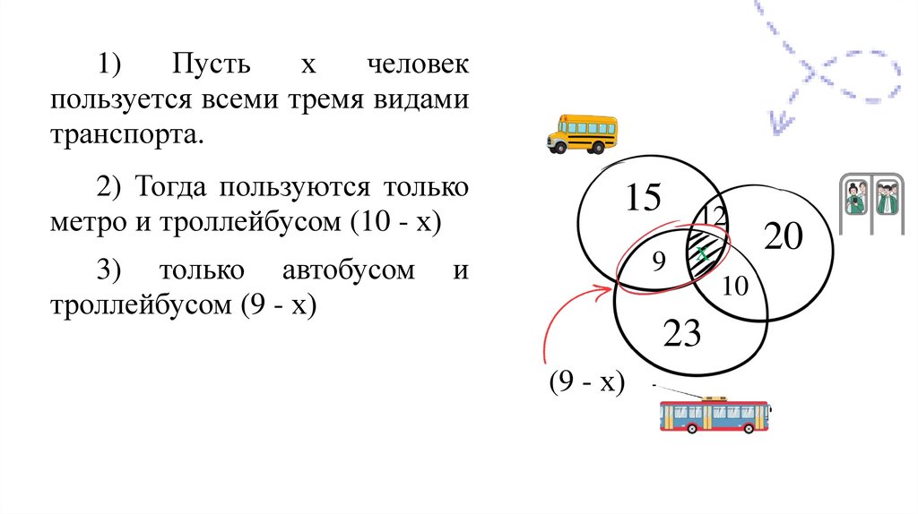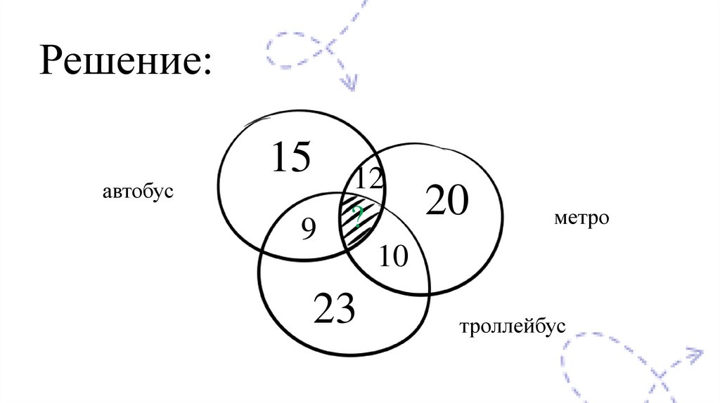 Решение:Изобразим условие задачи с помощью кругов Эйлера.