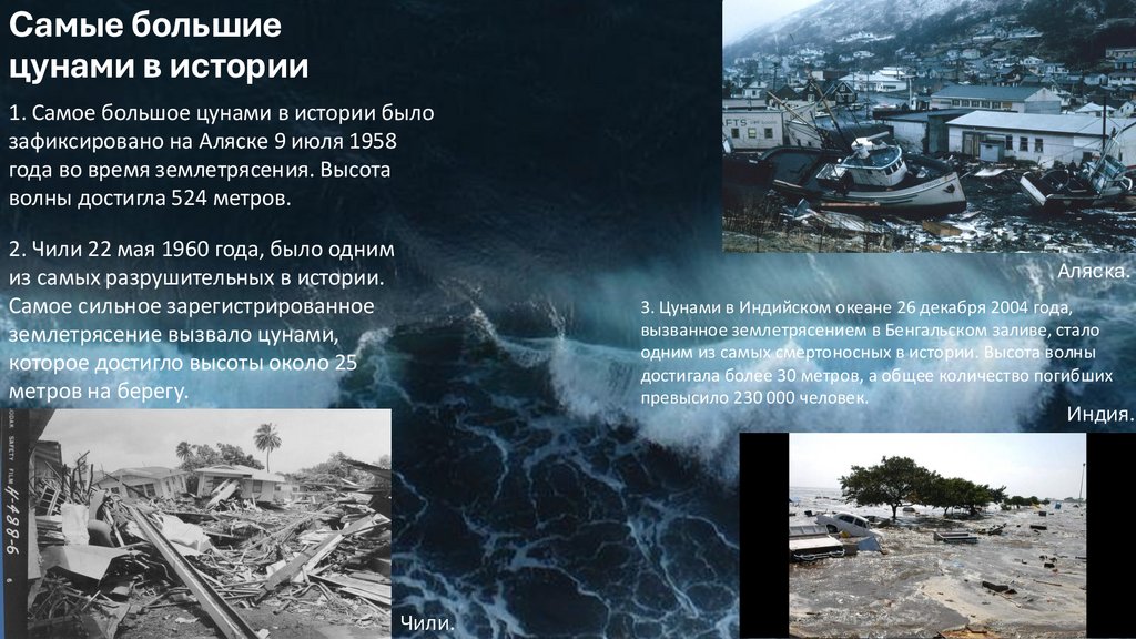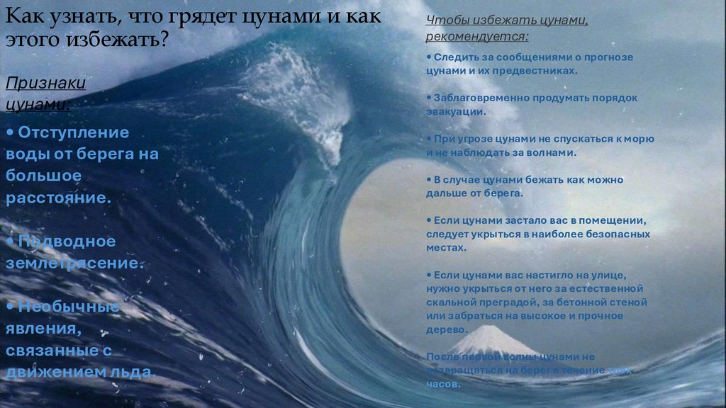 Цунами - это стихийное бедствие, серияогромных волн, возникающих из-за мощного