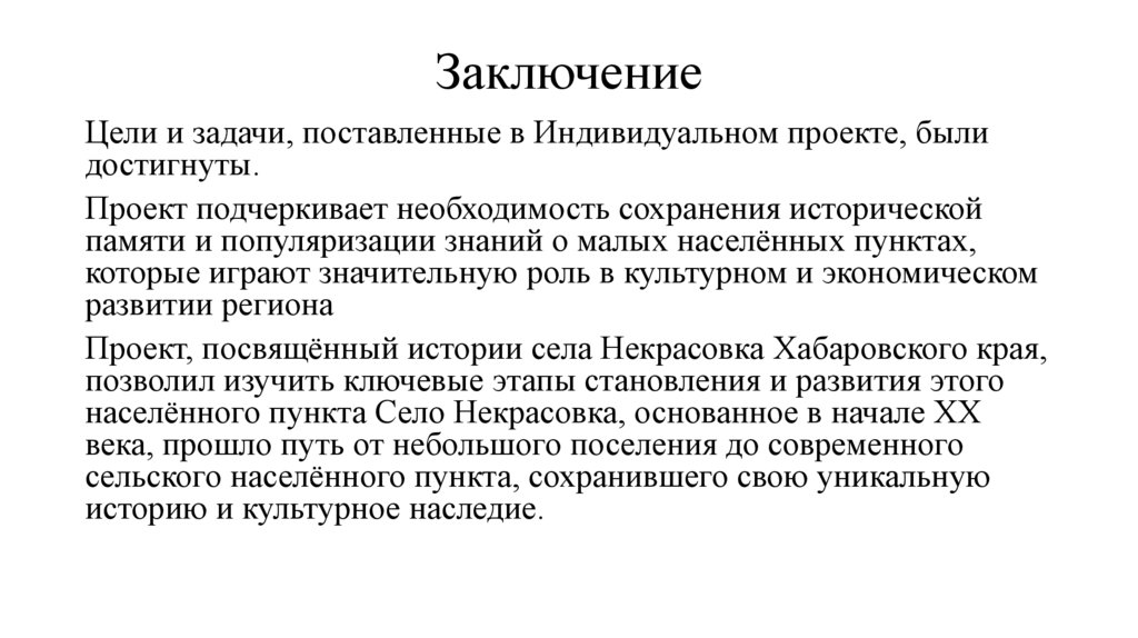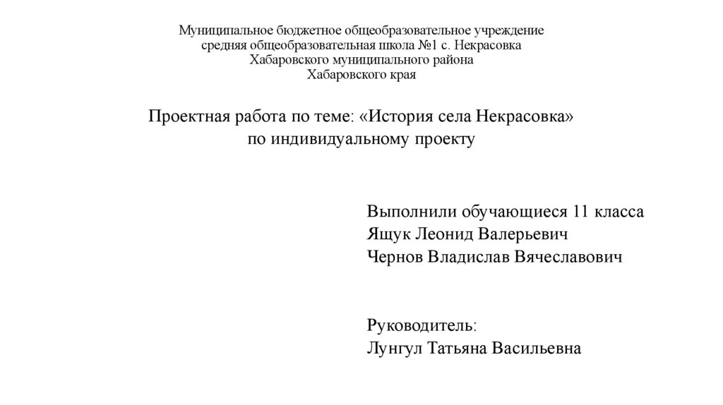 Проект, посвящённый истории села Некрасовка Хабаровского края,