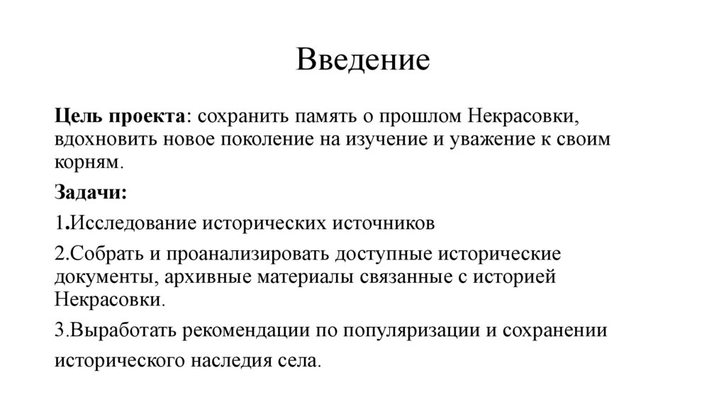 ВведениеЦель проекта: сохранить память о прошлом Некрасовки,
