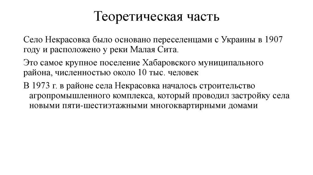 Теоретическая частьСело Некрасовка было основано переселенцами с Украины в 1907