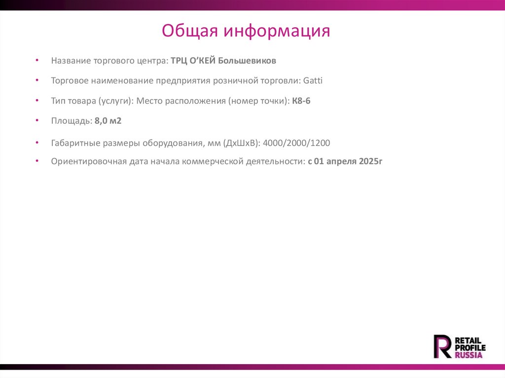 Ориентировочная дата начала коммерческой деятельности: с 01 апреля 2025г