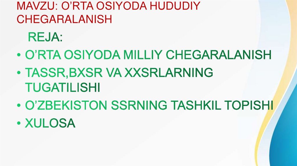 MAVZU: O’RTA OSIYODA HUDUDIYCHEGARALANISH