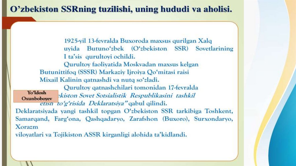 • 1920-yil 10-martda bo’lgan Turkiston ASSR MIK va