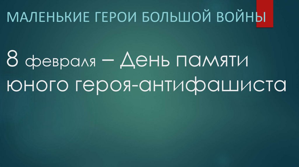 МАЛЕНЬКИЕ ГЕРОИ БОЛЬШОЙ ВОЙНЫ8 февраля – День памяти