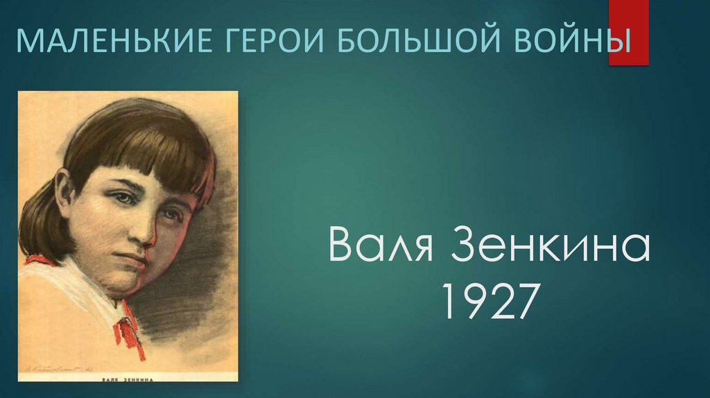 МАЛЕНЬКИЕ ГЕРОИ БОЛЬШОЙ ВОЙНЫВаля Зенкина