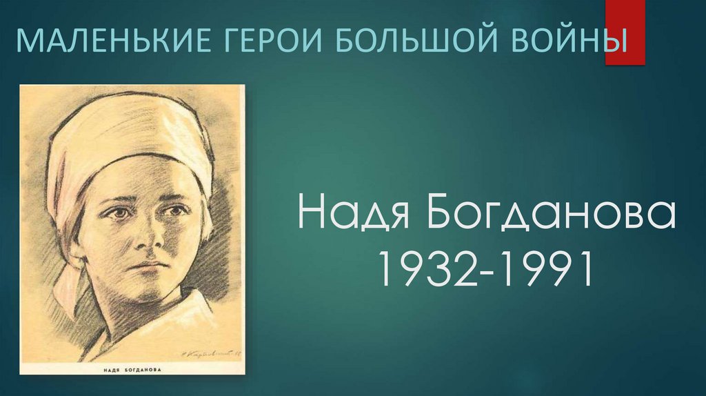 МАЛЕНЬКИЕ ГЕРОИ БОЛЬШОЙ ВОЙНЫНадя Богданова