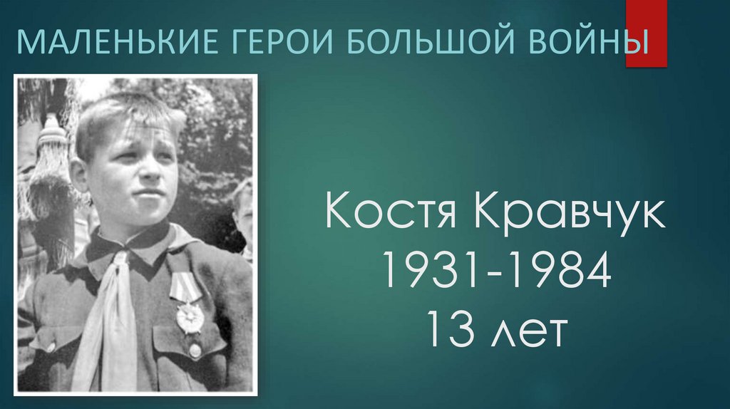 МАЛЕНЬКИЕ ГЕРОИ БОЛЬШОЙ ВОЙНЫКостя Кравчук