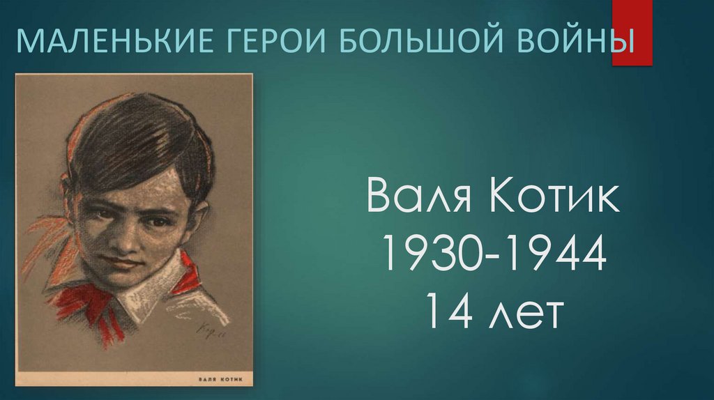 МАЛЕНЬКИЕ ГЕРОИ БОЛЬШОЙ ВОЙНЫВаля Котик