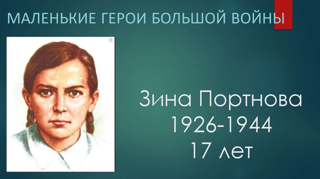МАЛЕНЬКИЕ ГЕРОИ БОЛЬШОЙ ВОЙНЫЗина Портнова
