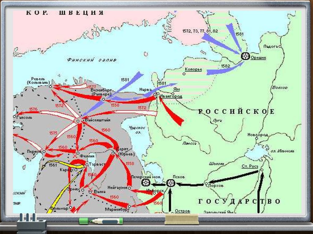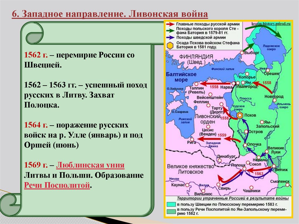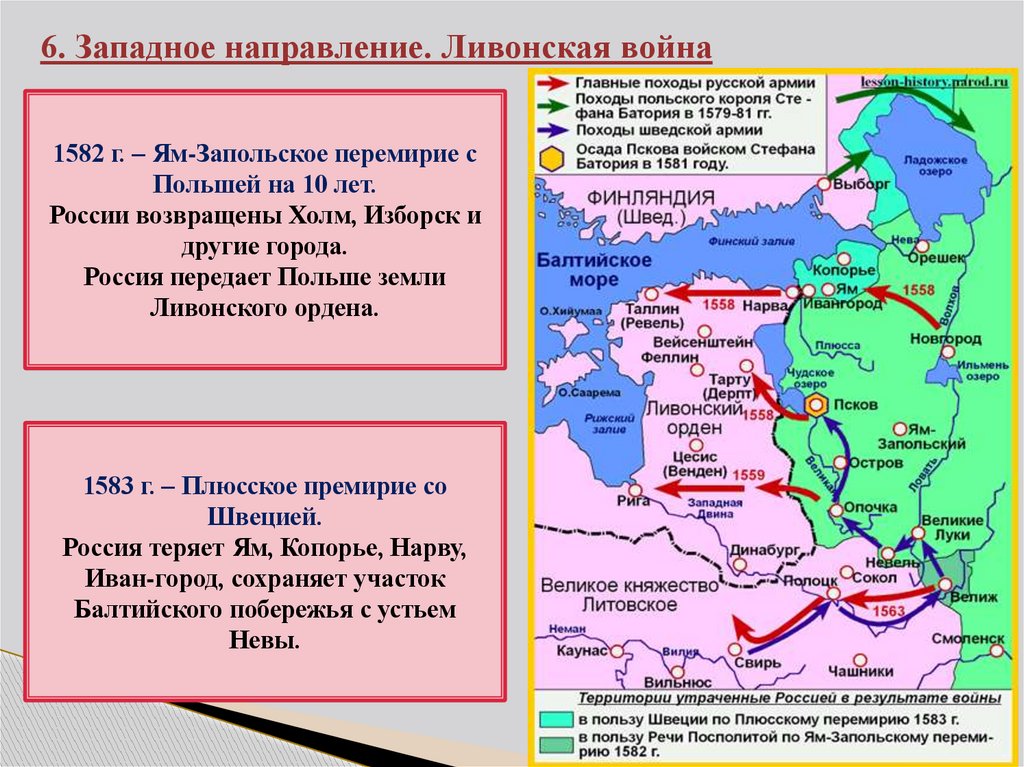 а) Ливонская война, продолжавшаяся 25 лет, закончилась