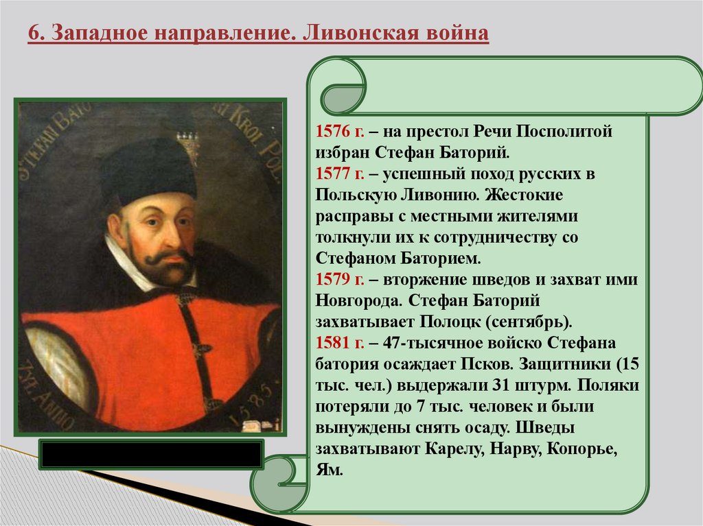б) Стефан Баторий захватил Полоцк, Великие Луки, Псков