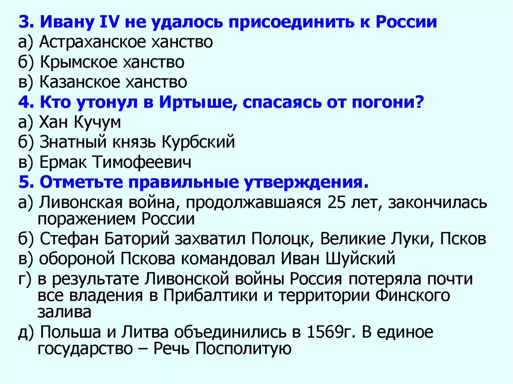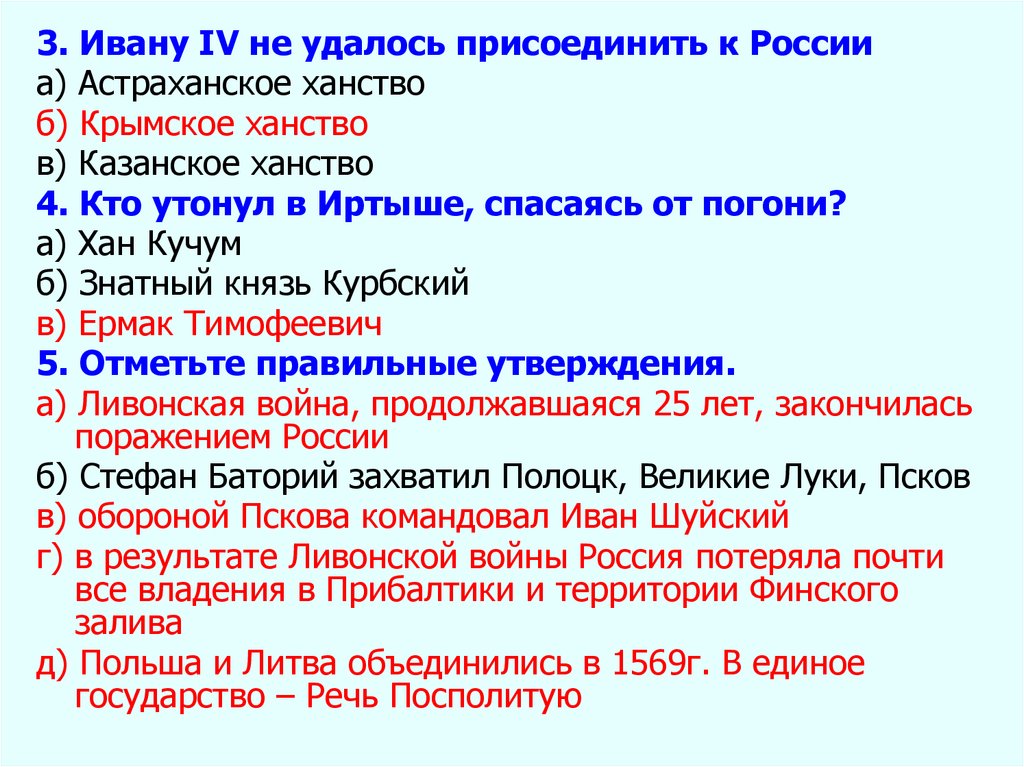 3. Ивану IV не удалось присоединить к Россииа) Астраханское ханство