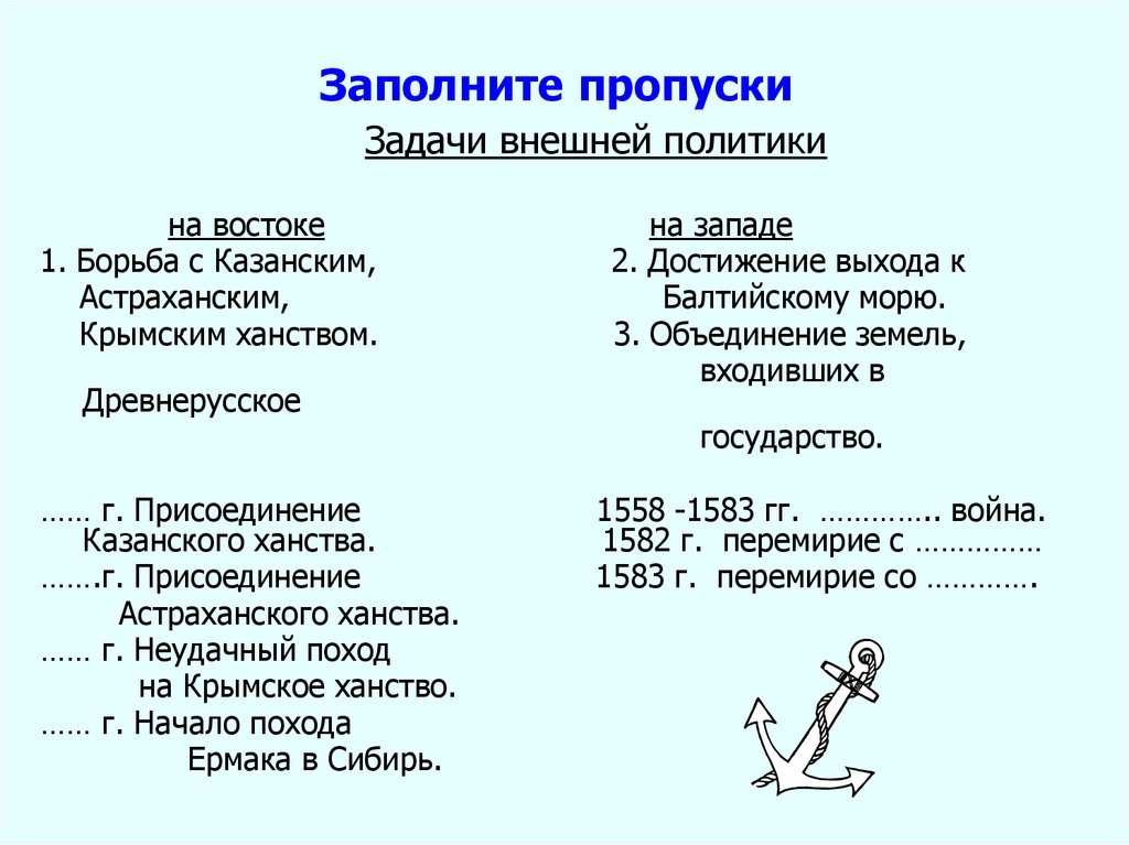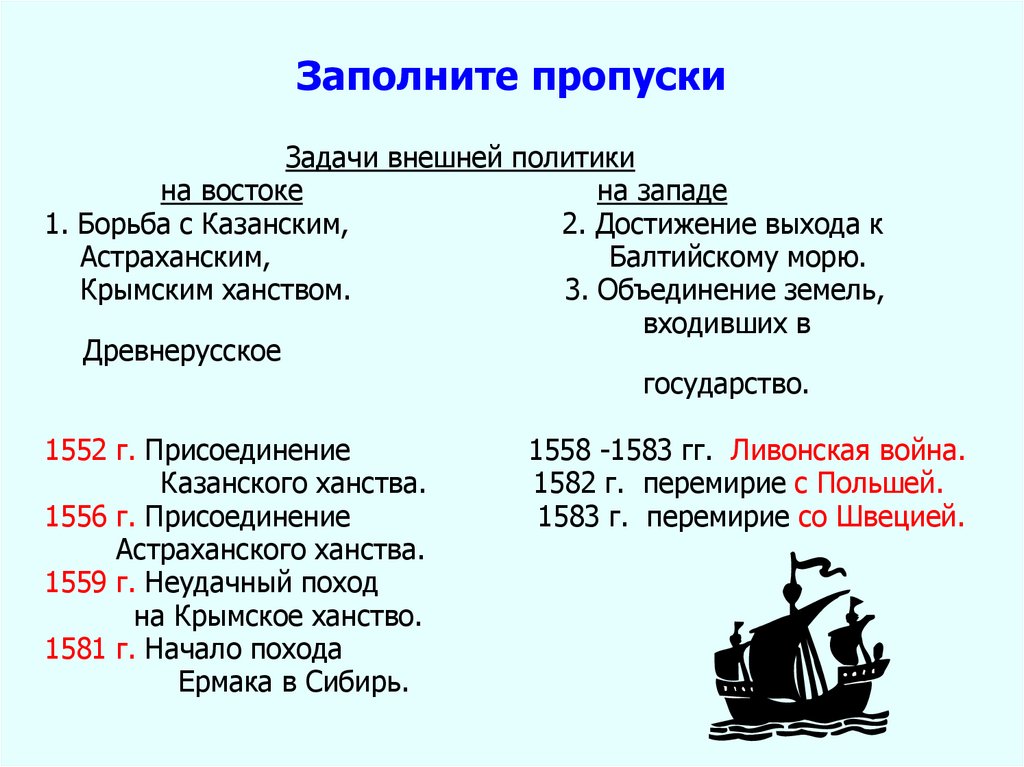 1. Основные направления внешней политики Ивана ГрозногоНаправления и задачи