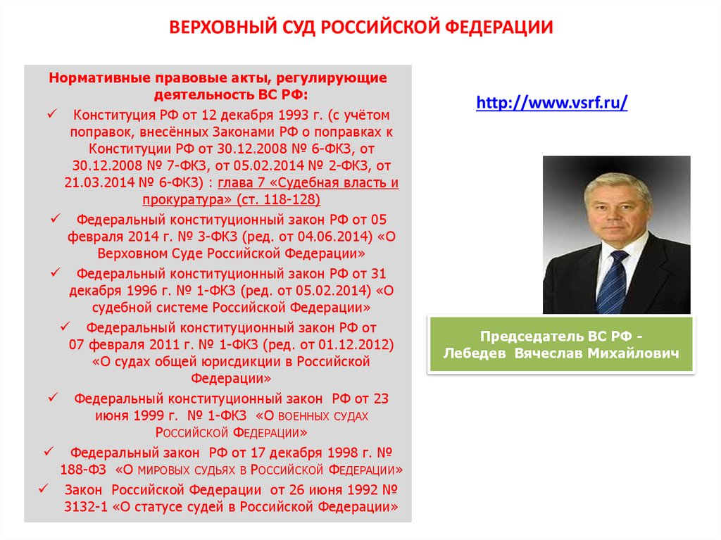 Конституционным судом Российской Федерации и судами общей юрисдикции во главе с Верховным Судом