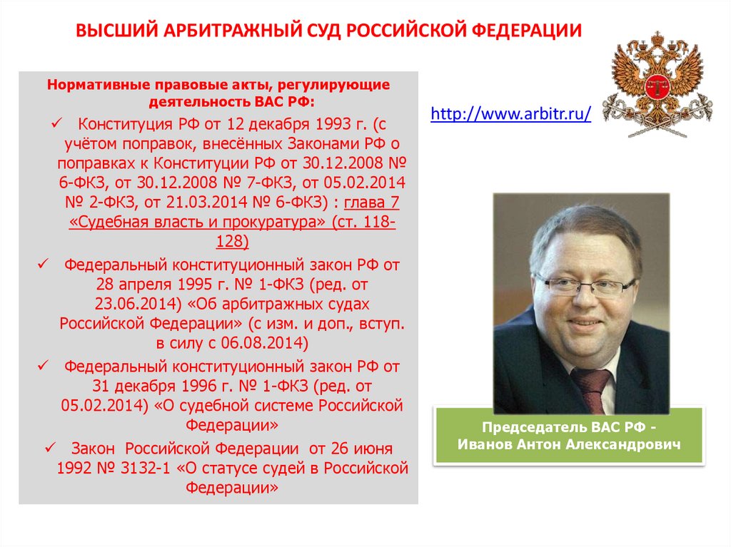 •В соответствии со статьей 127 Конституции Российской Федерации Высший Арбитражный Суд Российской