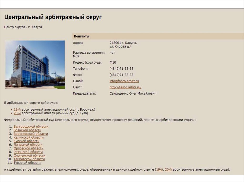 • 10 федеральных арбитражных судов округов, каждый из которых работает в