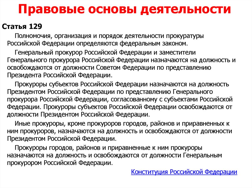 Прокуратура Российской Федерации принимает участие в правотворческой деятельности.