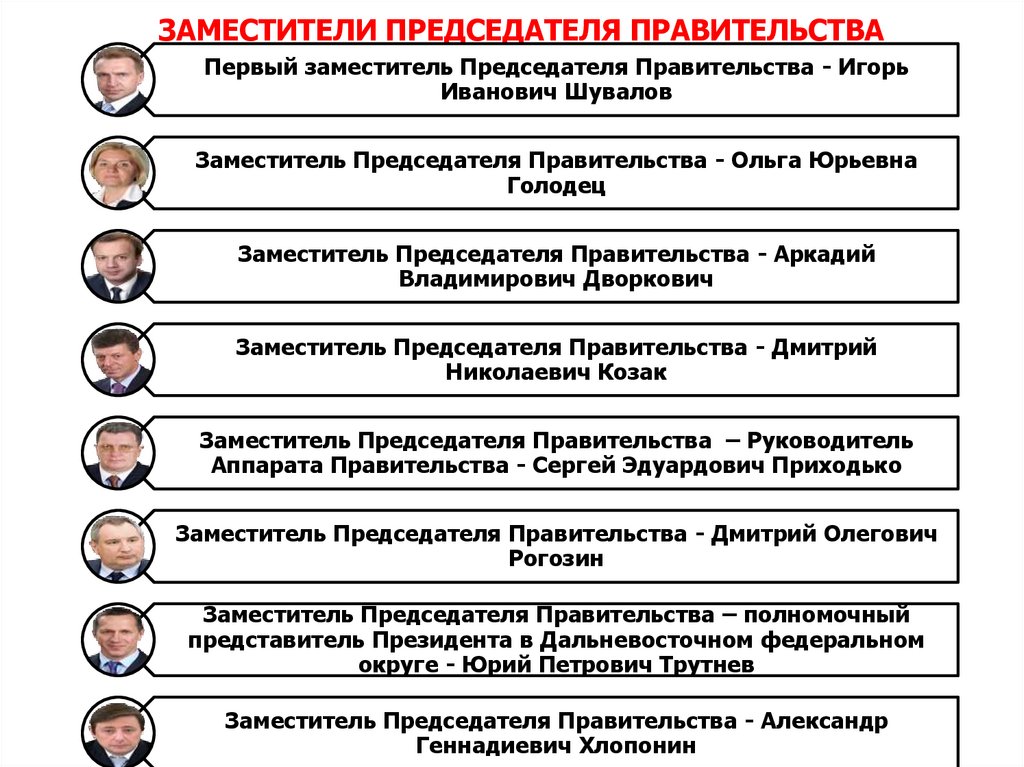 ЗАМЕСТИТЕЛИ ПРЕДСЕДАТЕЛЯ ПРАВИТЕЛЬСТВАПервый заместитель Председателя Правительства - Игорь