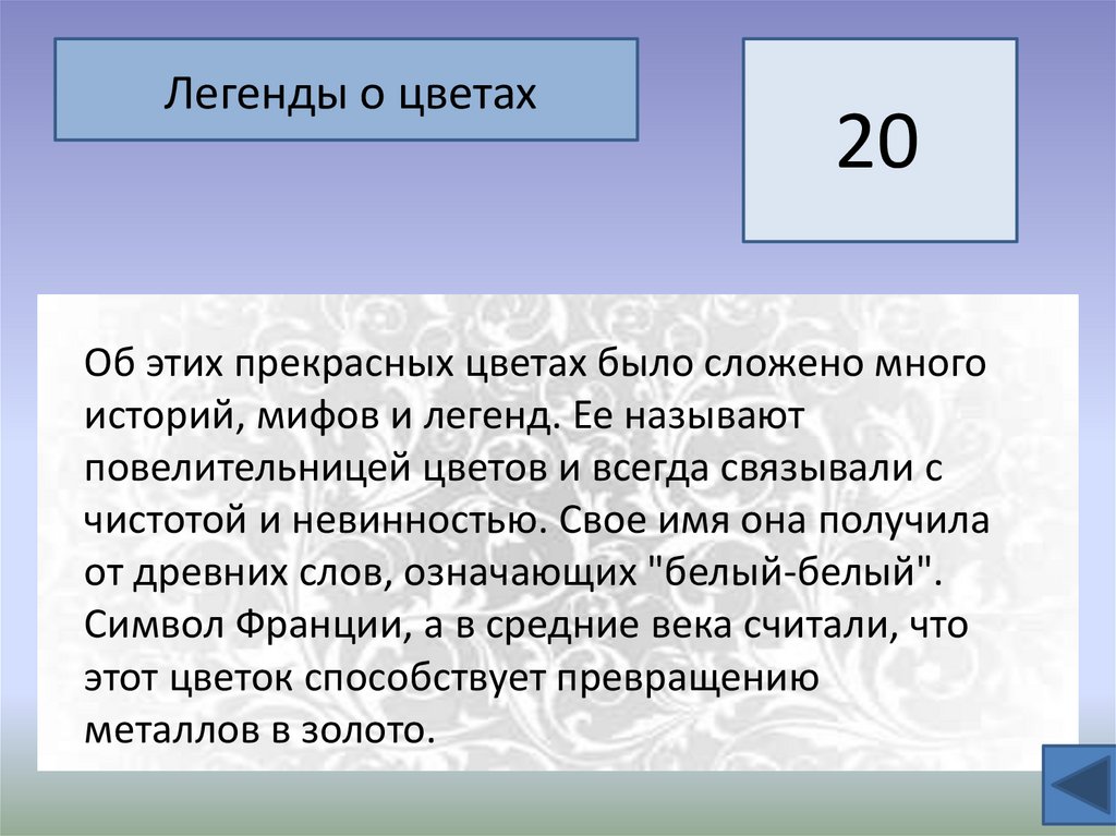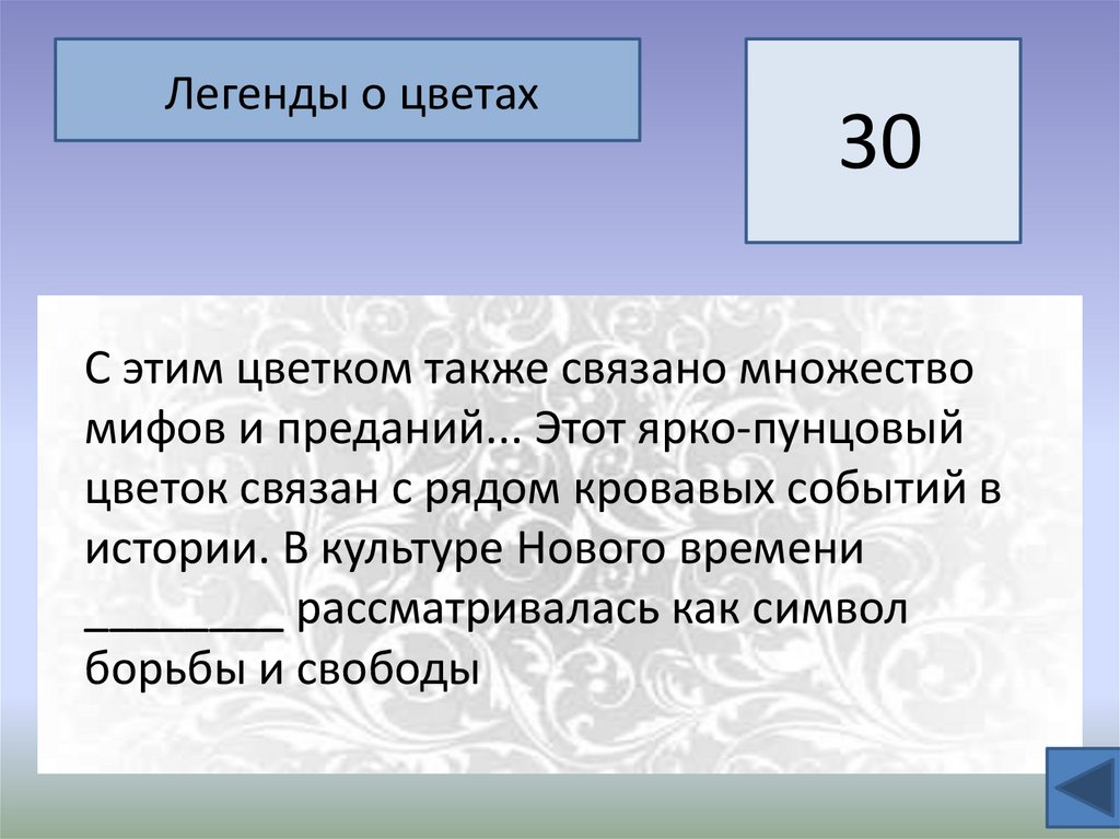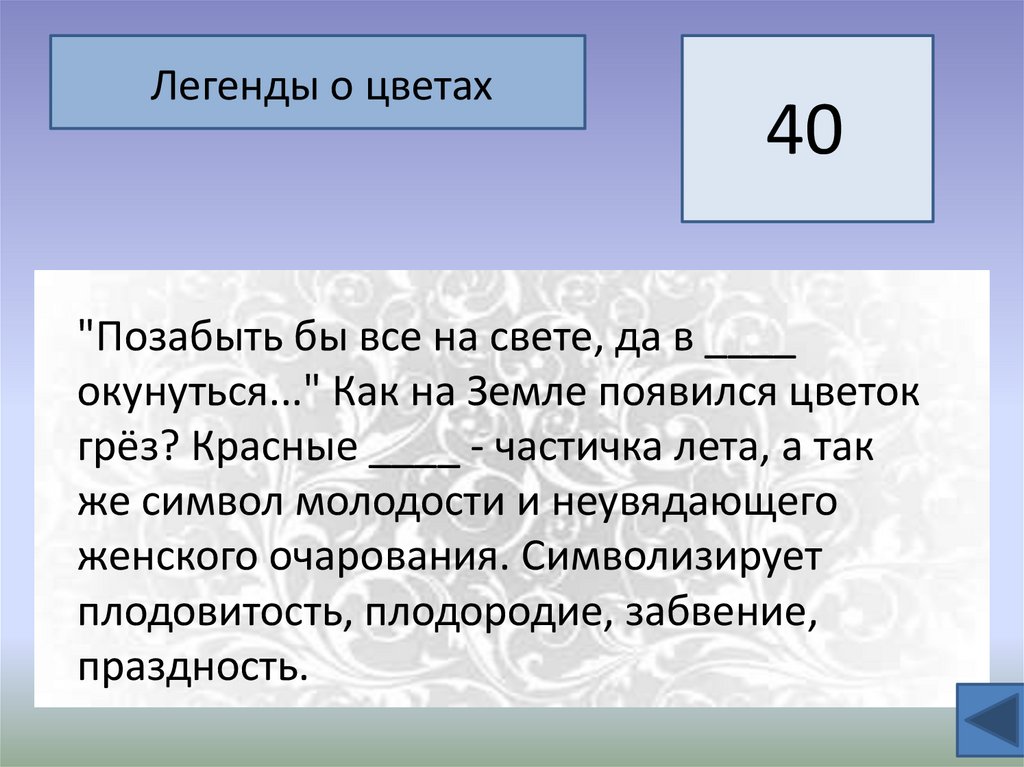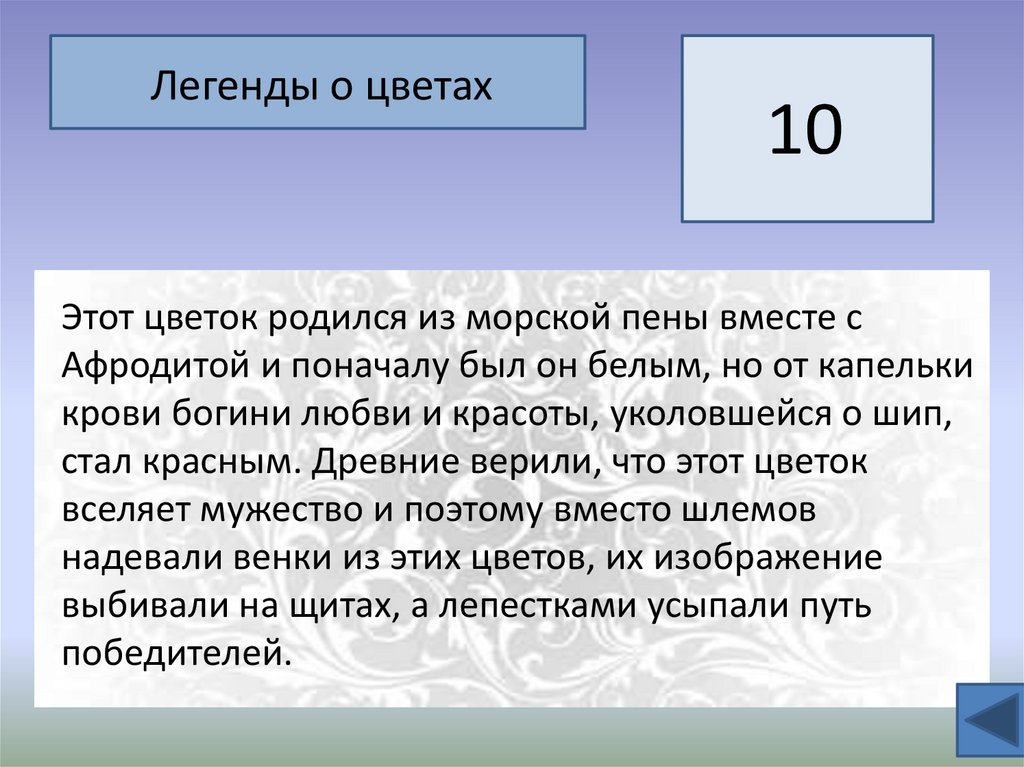 Своя Игра «УДИВИТЕЛЬНЫЙ МИР РАСТЕНИЙ»Легенда о цветах