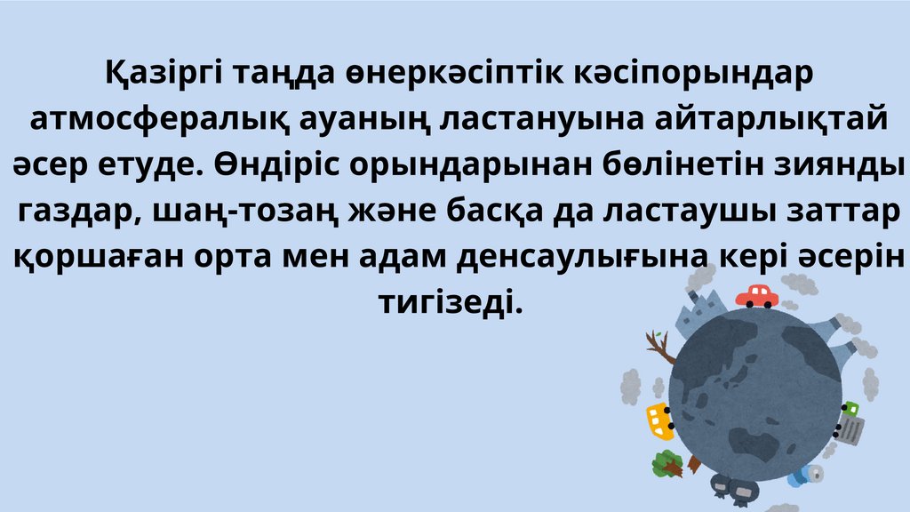 Қазіргі таңда өнеркәсіптік кәсіпорындаратмосфералық ауаның ластануына айтарлықтай