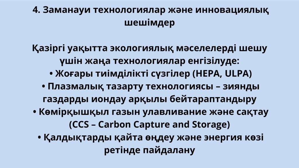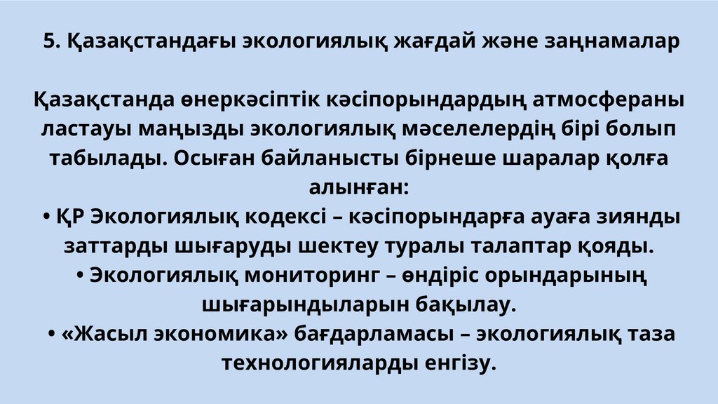 5. Қазақстандағы экологиялық жағдай және заңнамаларҚазақстанда өнеркәсіптік кәсіпорындардың атмосфераны