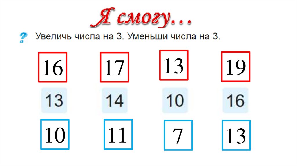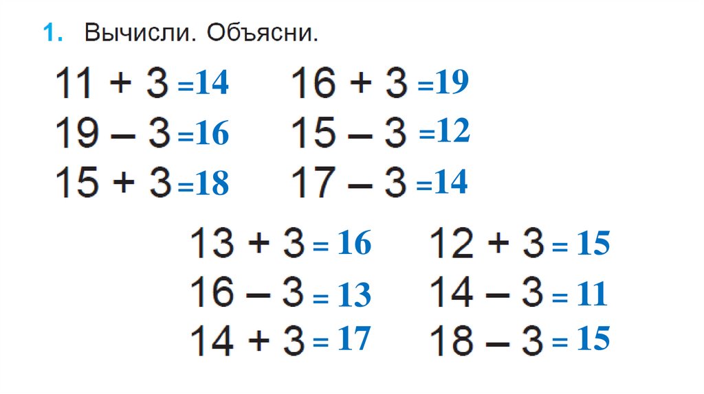 Сложение и вычитание в пределах 20. Состав чисел. Закрепление