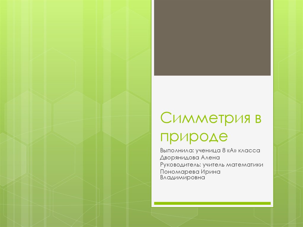 Цель работы: Поиск и исследование симметрии в мирерастений, животных, в теле человека, в неживой