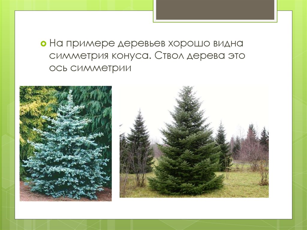 На примере деревьев хорошо виднасимметрия конуса. Ствол дерева это