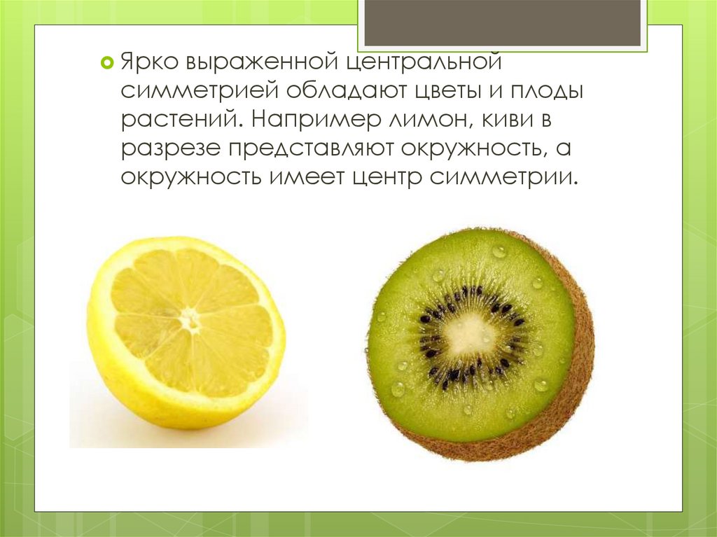Ярко выраженной центральнойсимметрией обладают цветы и плоды