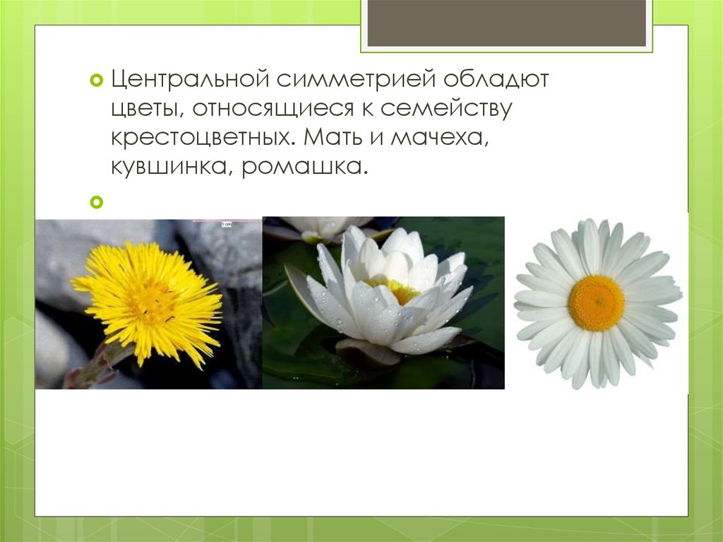 Центральной симметрией обладютцветы, относящиеся к семейству