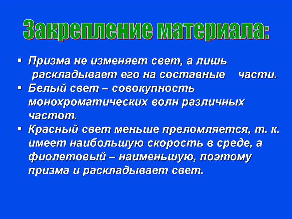а фиолетовый – наименьшую, поэтому призма и разлагает белый свет.