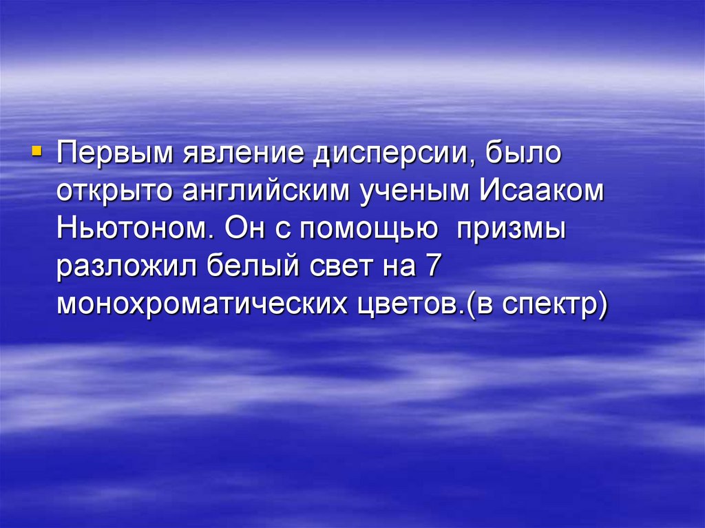 Первым явление дисперсии, былооткрыто английским ученым Исааком