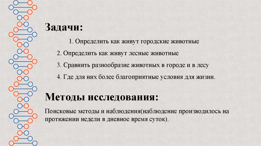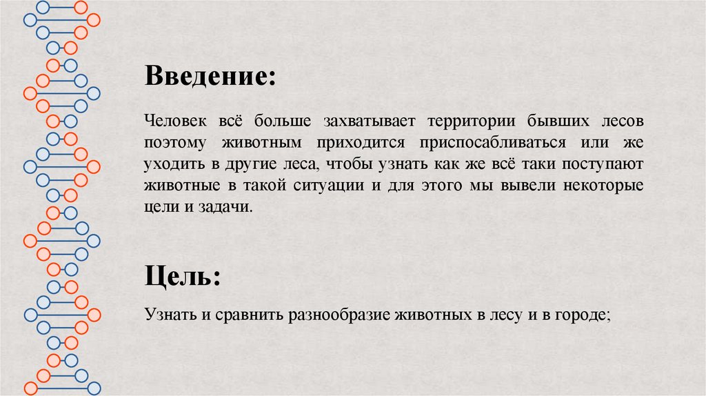 Узнать и сравнить разнообразие животных в лесу и в городе;