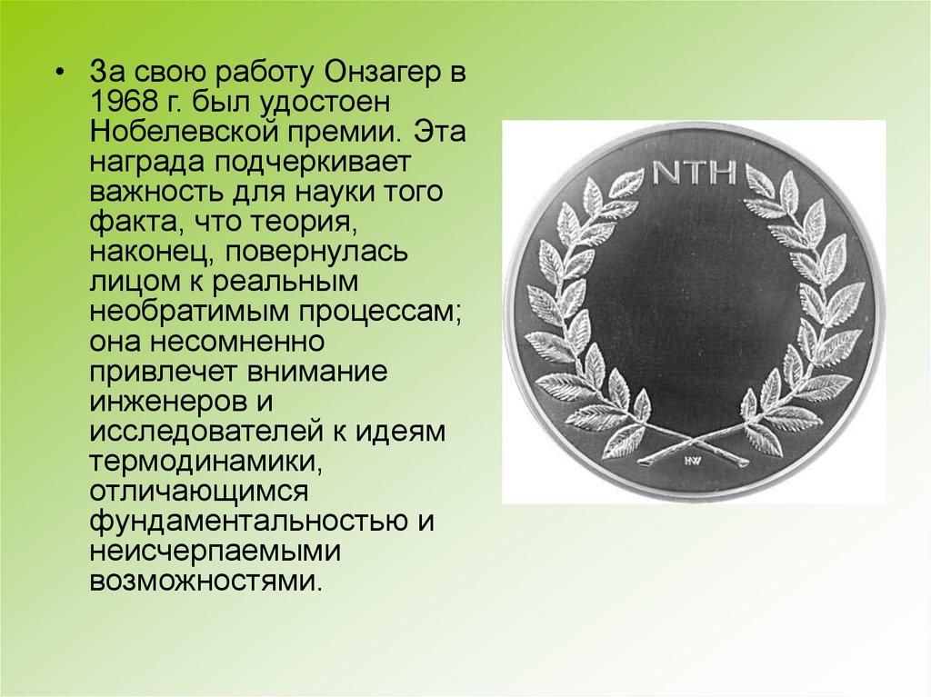 • Термодинамика необратимых процессов Онзагераимеет в своей основе весь аппарат классической