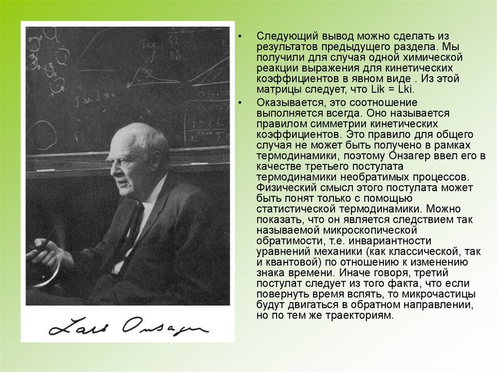 базирующийся на постулатах Л.Онзагера. Например, в соответствии с